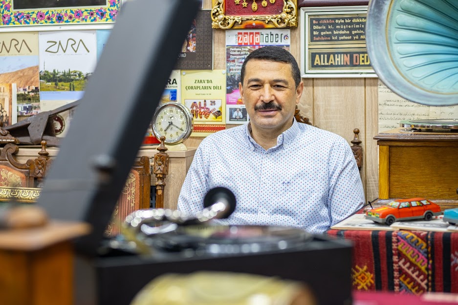 Koleksiyonerlerin kimi sadece çakmak topluyor, kimi saat, kimi tespih, plak koleksiyonu yapıyorlar ama ben hepsini toplamaya çalıştım. Radyo, çakmak, tespih, saat, pul, para, teneke kutu, anahtar, taş plak koleksiyonum var. Binden fazla taş plağım, 45’lik plaklarım, gramofonlarım, biblolar, süs eşyalarım var. Bunların yanı sıra evrak da topluyorum. Zara’ya ait eski tapular, mektuplar, zarflar, sözleşmeler de topluyorum. İlimizde sayılı koleksiyon parçaları olan ve ilçemizdeki tek müzenin sahibi olarak, Ermeni, gurbetçi kafilelerini, kamu kurum ve kuruluşlarının temsilcileri, öğrenciler, akademisyenler, çeşitli oda yönetimlerini ağırlıyoruz. Müze ve Salon olarak iki kısımdan oluşan yaklaşık 300 metrekarelik ofisimizde günde ortalama 25 kişiyi ağırlıyoruz.